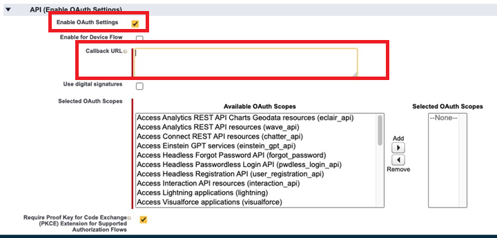 Callback URL: Use https://login.salesforce.com (Production) or https://test.salesforce.com (Sandbox)