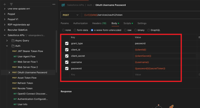 You can check that the Connected App is working correctly by using a tool like Postman. After filling in the credentials, click Send, a response will appear indicating whether the authentication was successful or unsuccessful.