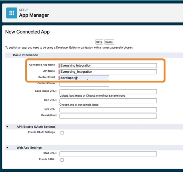 Follow these straightforward steps to connect Salesforce and Evergiving for seamless data synchronization. This setup is straightforward and only needs to be done once. The primary objective is to create and configure a Salesforce Connected App, obtain the necessary credentials, and establish the connection within Evergiving to enable data flow.